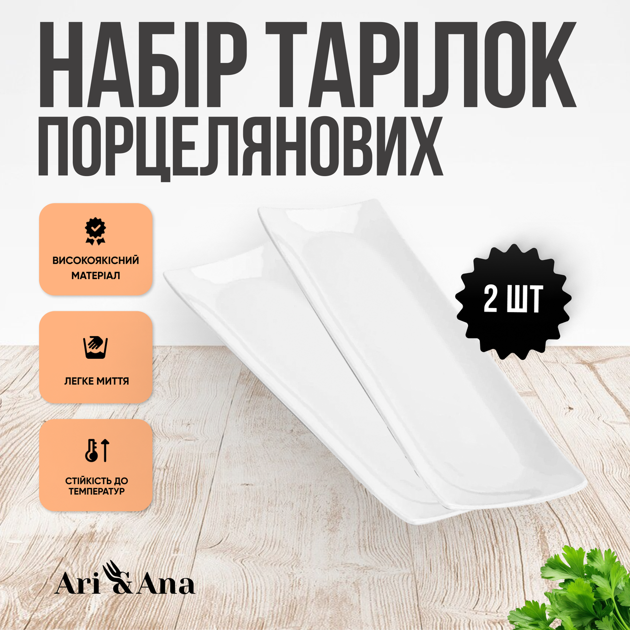 Набір порцелянових прямокутних тарілок Ari&Ana – 2 шт х 36 см, прямокутна тарілка для фуршетів